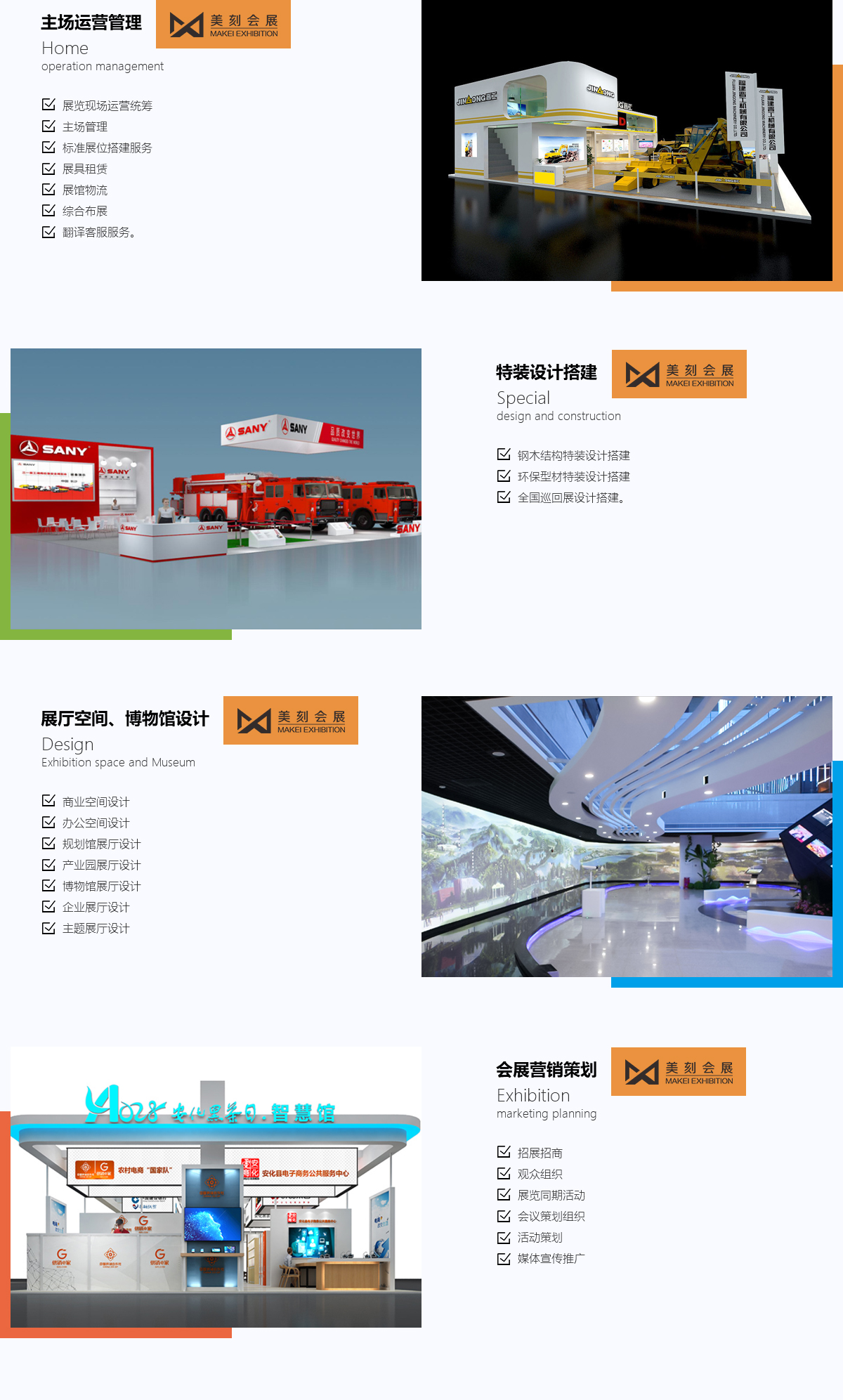 廣東美刻會展專業(yè)提供展臺搭建設計,展覽展會搭建,展臺展會定制,會展展位安裝等服務,我們擁有自己的大型展覽制作工廠,有國際標準鋁料展具兩千多套,大方柱展具 材料兩千多套,作為公司強有力的技術(shù)支持.